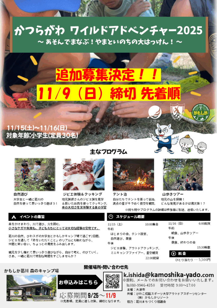かつらがわ ワイルドアドベンチャーキャンプ2025 お申込みについて(受付終了)